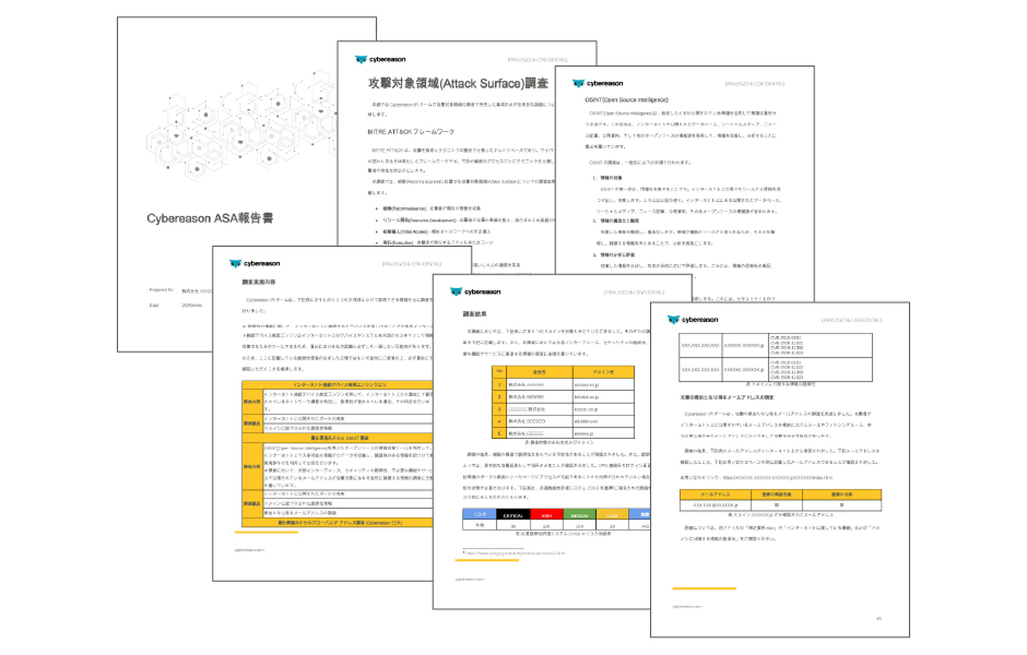 豊富な現場経験を持つ専門アナリストが、攻撃者の視点で外部リスクを徹底分析。単なるスキャン結果ではなく、「なりすまし」「フィッシングの標的となりうる外部情報」「クラウド設定ミス」など、実被害につながりやすいリスクを文脈ごとに精査します。さらに、こうした外部リスクに対して、MITRE PRE-ATT&CKの観点や、Cybereason EDRで得られる外部通信に関する情報を組み合わせることで、攻撃者が侵入口として狙いそうなポイントを特定する支援を行います。