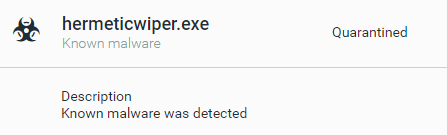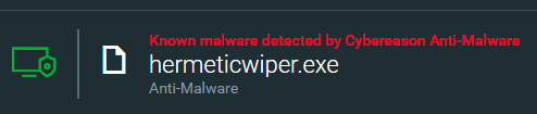 ▲Cybereason Defense Platformに示されたHermeticWiperファイルの判定