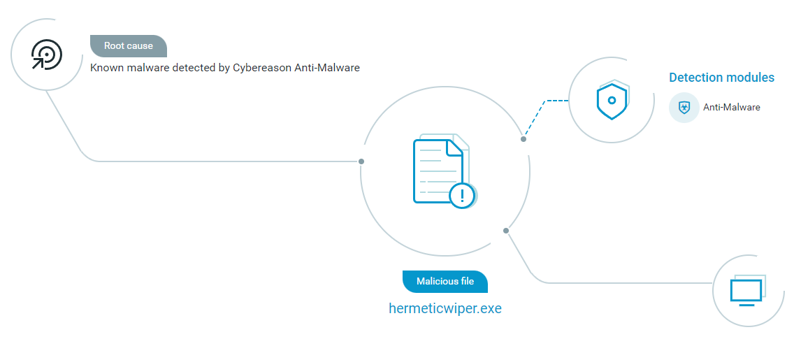 ▲Cybereason Defense Platformで検知されたHermeticWiperマルウェア