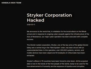 最新の変化は単なる「攻撃の増加」ではなく、スタイルの変化です。サイバー戦線は、純粋な長期のスパイ活動から、プロキシ・ペルソナ、ハクティビストのフロント、およびハック&リーク操作を通じて実行される、より迅速で否認可能な、心理的影響を狙った妨害工作へと移行しています。ロイターは3月1日にイランのアプリやウェブサイトに対するサイバー活動を報じましたが、3月11日にはイランに関連するペルソナであるHandalaが、米国の医療技術企業Stryker社への破壊的攻撃の犯行声明を出しました。これは、報復がイスラエルそのものを超えて、広範な紛争環境に関連する商業的に重要な西側諸国のターゲットへと拡大している兆候であると、多くのアナリストが分析しています。
