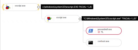 ステージ2のペイロードの実行はwscriptにより開始されますが、その後、子プロセスとして生成されたcscriptのインスタンスへと実行が移ります。この結果、cscriptは、PowerShellスクリプトの難読化を解除するようなPowerShellのインスタンスを生成します。この難読化解除されたPowerShellスクリプトが実行されると、検出アクティビティとC2通信の両方が開始されます。