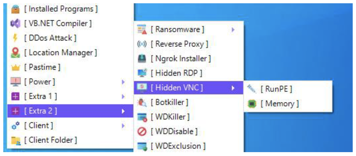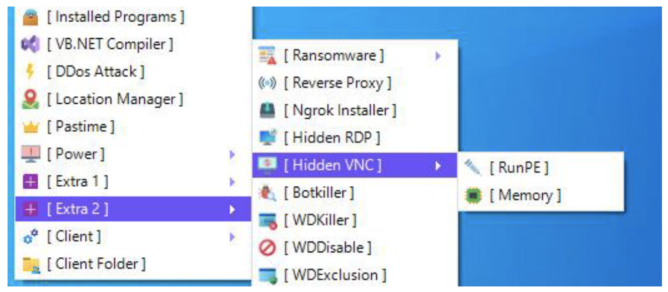 このセクションでは、複数のマルウェアフォーラムで発見された、hVNC/hRDP機能を実装したさまざまなRATの概要を紹介します。
