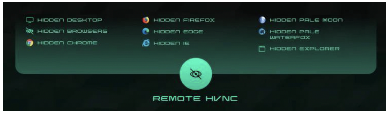 最近の多くのRATでは、マルウェア作成者がhVNCとhRDPをオプション機能として統合するケースが増えています。これらの手法は、ハッキングされたシステムへの持続的なステルスアクセスを維持するのに有効であるため、脅威アクターに好まれています。