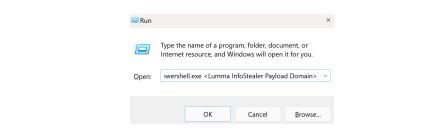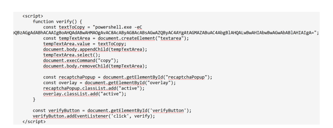 被害者が「私はロボットではありません」ボタンをクリックすると、verify関数は、将来廃止される予定のdocument.executecommand(“copy”)コマンドを実行し、提供されたスクリーンショット内に含まれているPowerShellコマンドを自動的にクリップボードにコピーします。そして、このPowershellコマンドの実行により、ドメインpropller.b-cdn[.]net/propllerからLummaStealerペイロードがダウンロードされます。