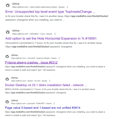 GitHubのコメントをLummaStealerの拡散に利用する事例が観測されています。攻撃者は、さまざまな製品のバグに対する修正を装って、Githubのコメントでリンクを共有していました。たとえば、下記のスクリーンショットでは、攻撃者はGithubディスカッションのコメントとして悪意あるリンクを共有しています。