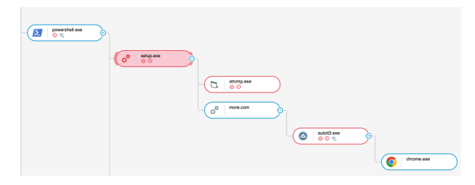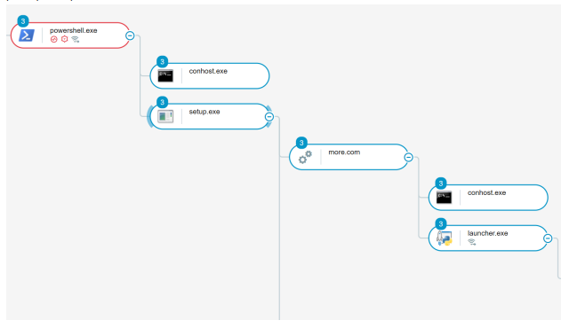 これら2つのバリアント(Pythonを使用するものとAutoITを使用するもの)間において観測された類似点の1つとして、プロセス(more.com)が、コマンド&コントロールサーバーへの接続につながるような、さらなる悪意ある活動の実行に使用されることが挙げられます。この振る舞いは、他の研究者たちによっても確認されています。