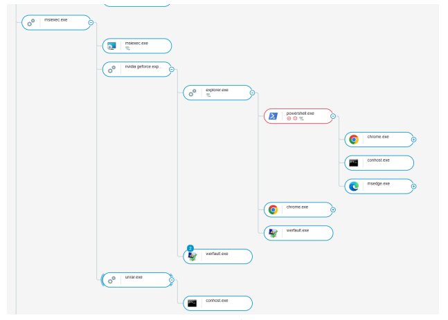 初期感染が発生すると、それに続いて複数のアクティビティが観測されます。これには、mshta.exeやpowershell.exeを使用して、LummaStealerのペイロードを実行するソフトウェアを含むZIPアーカイブをダウンロードして開くことが含まれています。