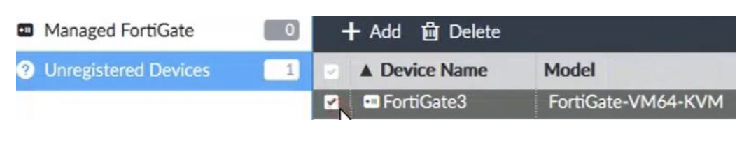 - FortiManagerは、証明書とシリアル番号を検証します。検証後、新しいデバイスは未承認デバイスセクションにリストされます。