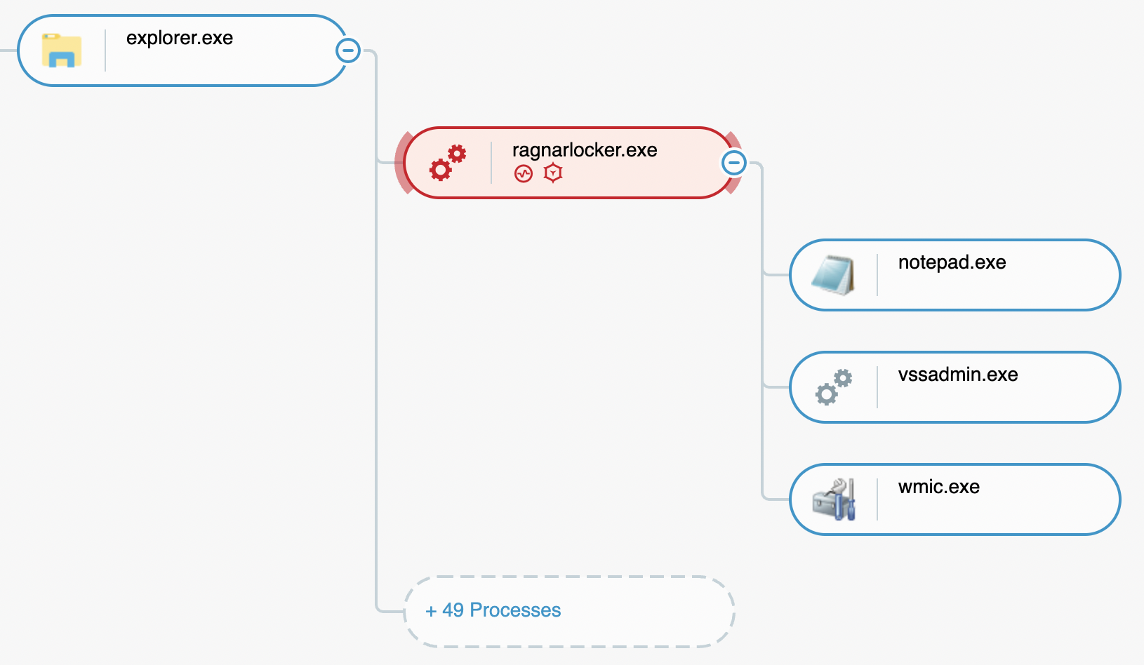 ▲Ragnar Lockerの実行により生じたプロセスを時系列に並べたもの(新しいものほど上部に表示される)。