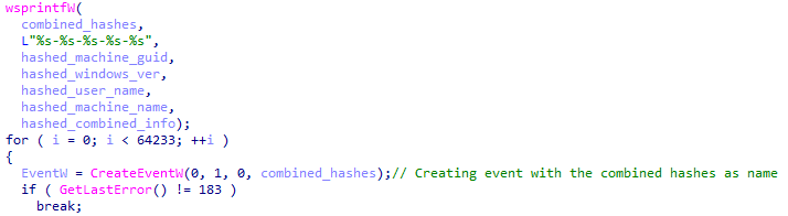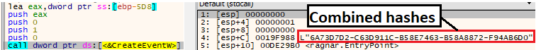 次に、Ragnar LockerはAPIコールCreateEventWを使って新しいイベントを作成し、組み合わせたハッシュをイベントの名前として使用します。