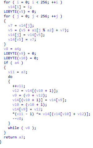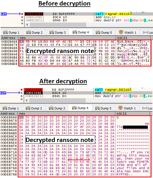 Ragnar Lockerは、バイナリセクションに埋め込まれた隠しコンテンツを含んでいます。Ragnar Lockerは、RC4暗号アルゴリズムを使って、ランタイム中にこのコンテンツを復号します。
