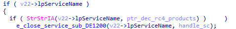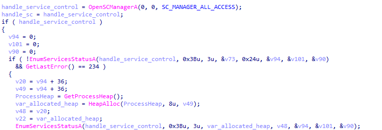 その後、Ragnar Lockerは、感染した端末上で実行中のサービスに対する反復処理を実行します。復号されたサービスの1つが見つかった場合、Ragnar Lockerはそのサービスを終了させます。