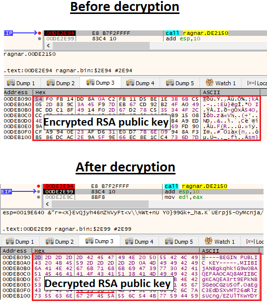 続いて、Ragnar Lockerは、埋め込まれているRSA公開鍵を復号します。