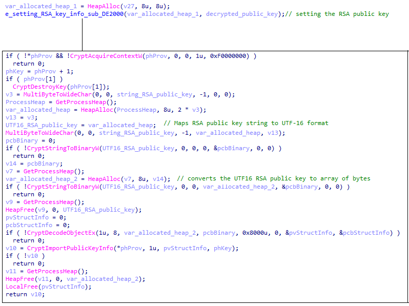 公開鍵を復号した後、Ragnar Lockerはその鍵を別の関数に渡すことで、その鍵を後で利用できるようにします。