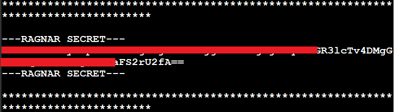 さらに、Ragnar Lockerは身代金要求書を出力した後、「—RAGNAR SECRET—-」で始まるもう1つのより小さな部分を書き込みます。この部分は、APIコールCryptBinaryToStringAの出力になります。