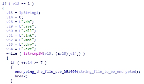 暗号化関数は、暗号化処理から除外するいくつかのファイルをまずチェックします。除外対象となるのは、次のファイルです。