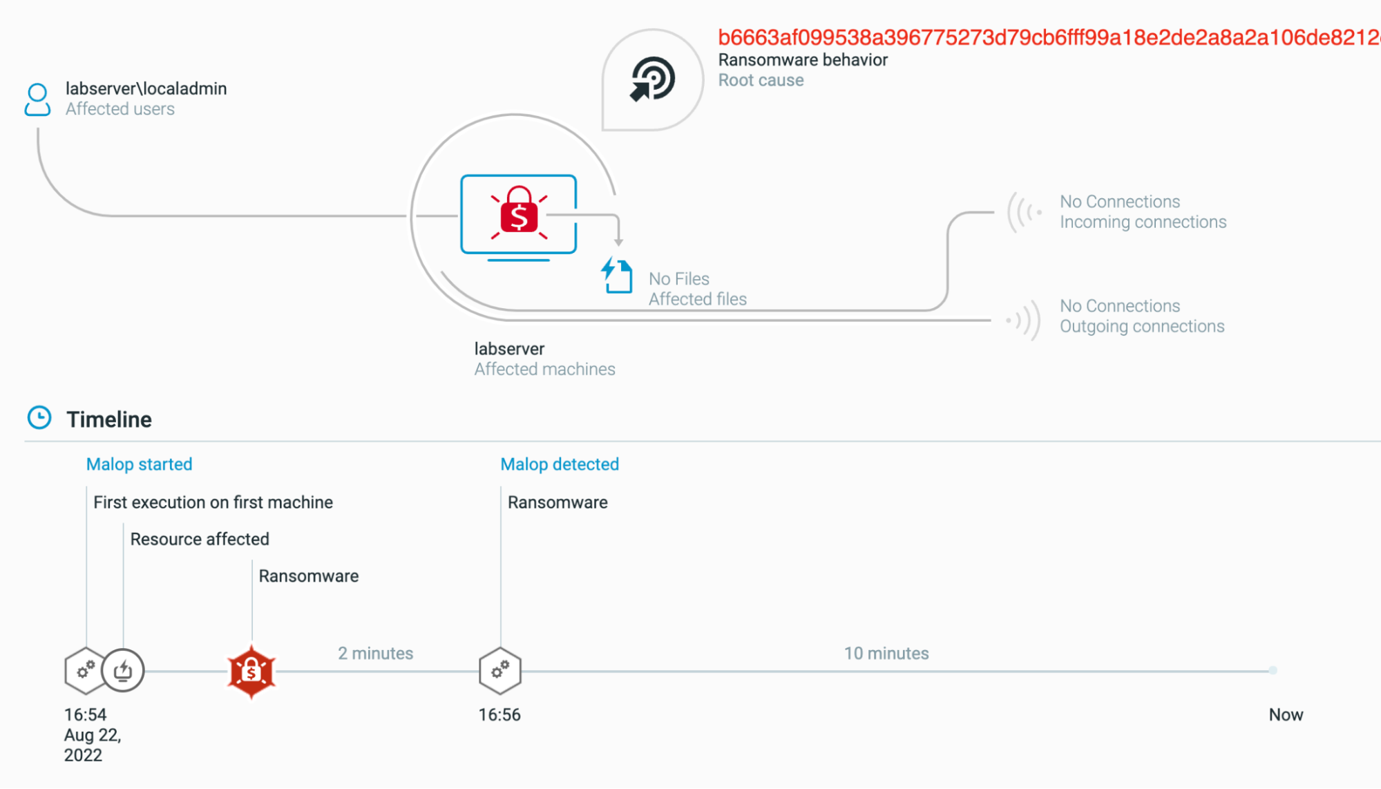 まず、Cybereasonセンサーを搭載した制約付きのラボのライブ環境で、1つのサンプルを実行することから分析を開始しました。