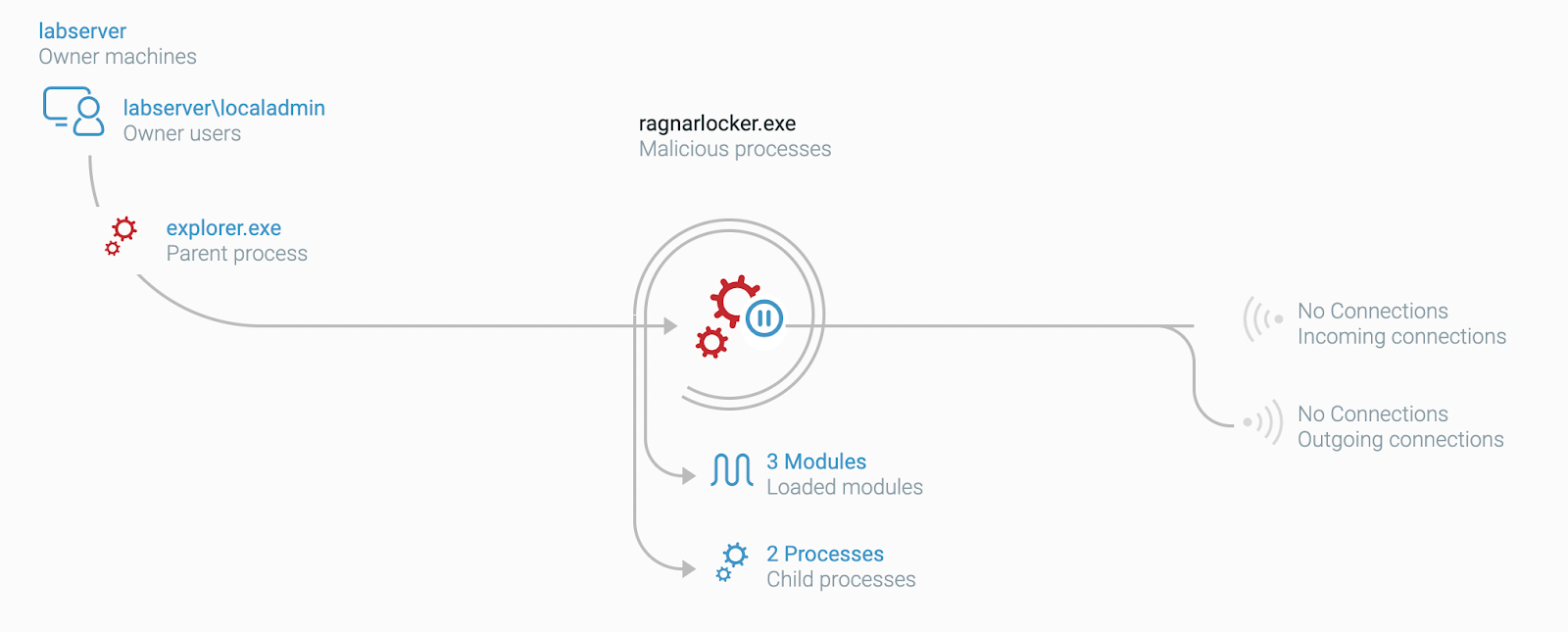 ▲「Ragnar Locker.exe」プロセスのプロパティ(Cybereason Defense プラットフォームでの表示)