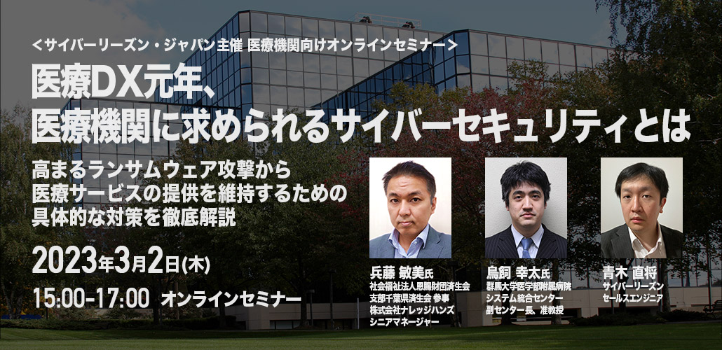 <3/2 オンライン>医療DX元年、医療機関に求められるサイバーセキュリティとは 〜高まるランサムウェア攻撃から医療サービスの提供を維持するための具体的な対策〜