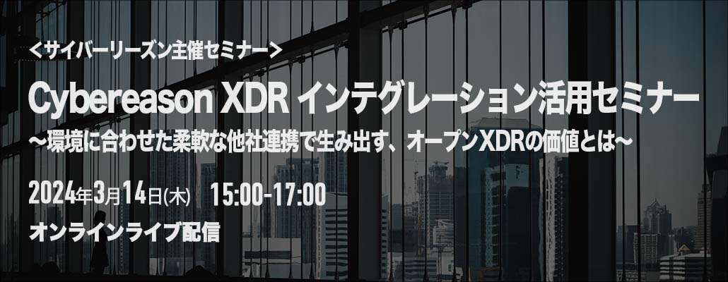 <3/14 オンライン>Cybereason XDR インテグレーション活用セミナー 〜環境に合わせた柔軟な他社連携で生み出す、オープンXDRの価値とは〜