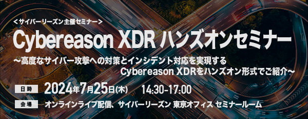 <7/25 東京・オンライン>Cybereason XDR ハンズオンセミナー 〜高度なサイバー攻撃への対策とインシデント対応を実現するCybereason XDRをハンズオン形式でご紹介〜
