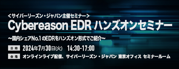 <7/30 東京・オンライン>Cybereason EDR ハンズオンセミナー〜国内シェアNo.1のEDRをハンズオン形式でご紹介〜