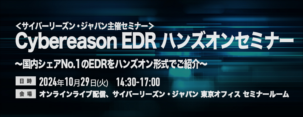 <10/29 東京・オンライン>Cybereason EDR ハンズオンセミナー〜国内シェアNo.1のEDRをハンズオン形式でご紹介〜