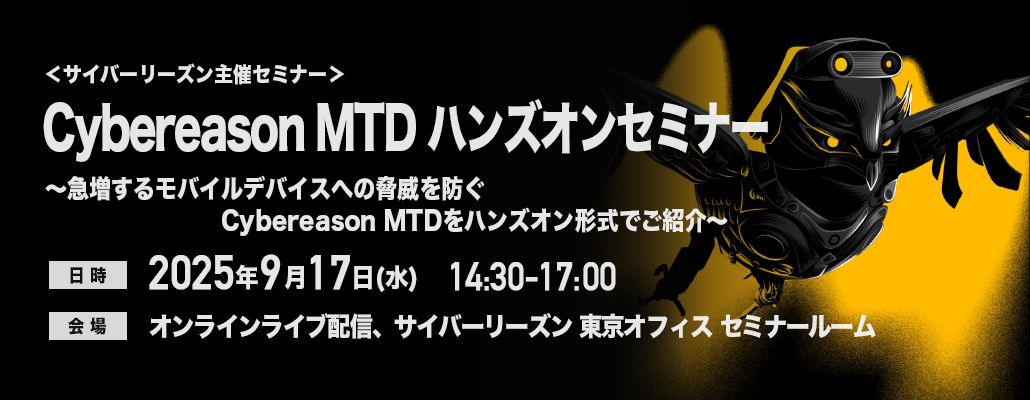 <9/17 東京・オンライン>Cybereason MTD ハンズオンセミナー 〜急増するモバイルデバイスへの脅威を防ぐCybereason MTDをハンズオン形式でご紹介〜