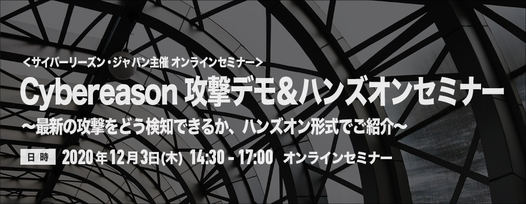 2020年12月3日(木)にオンラインにて「Cybereason 攻撃デモ&ハンズオンセミナー」を実施します。
