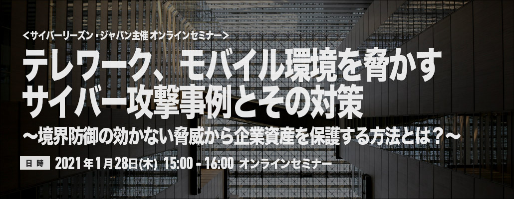 <1/28 オンライン>テレワーク、モバイル環境を脅かすサイバー攻撃事例とその対策