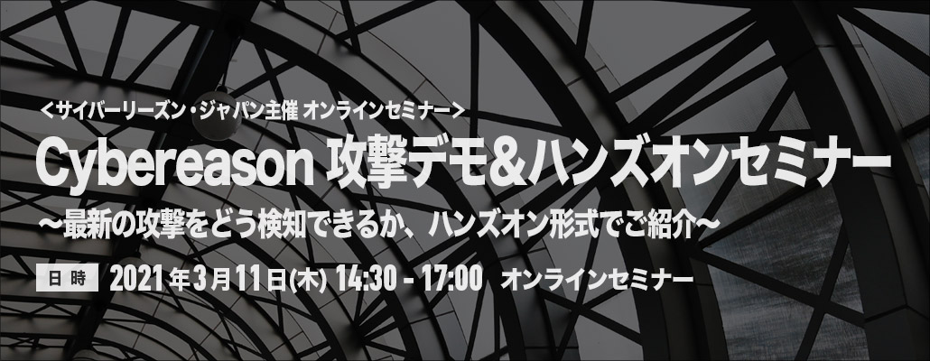 2021年3月11日(木)にオンラインにて「Cybereason 攻撃デモ&ハンズオンセミナー」を実施します。