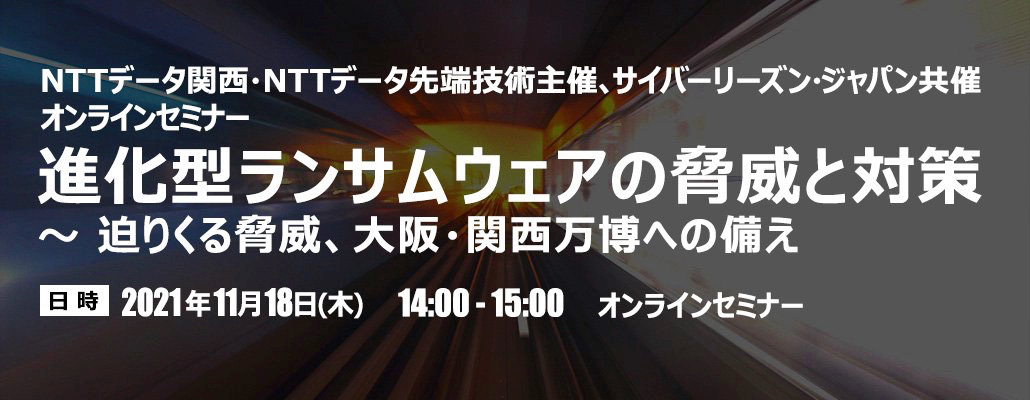 <11/18 オンライン>進化型ランサムウェアの脅威と対策 ~ 迫りくる脅威、大阪・関西万博への備え