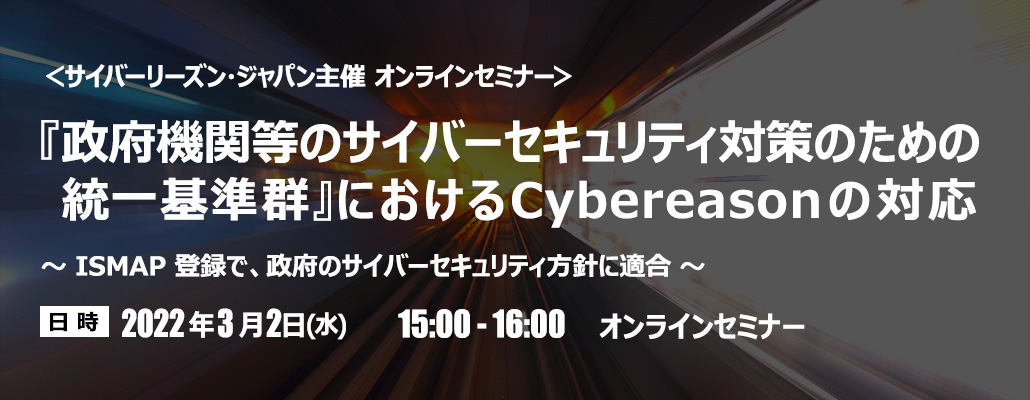 <3/2 オンライン>『政府機関等のサイバーセキュリティ対策のための統一基準群』におけるCybereasonの対応 〜 ISMAP 登録で、政府のサイバーセキュリティ方針に適合 〜