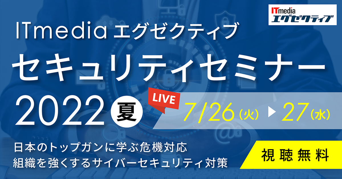 <7/26-27 オンライン>ITmedia エグゼクティブ セキュリティセミナー 2022 夏〜日本のトップガンに学ぶ危機対応 組織を強くするサイバーセキュリティ対策〜
