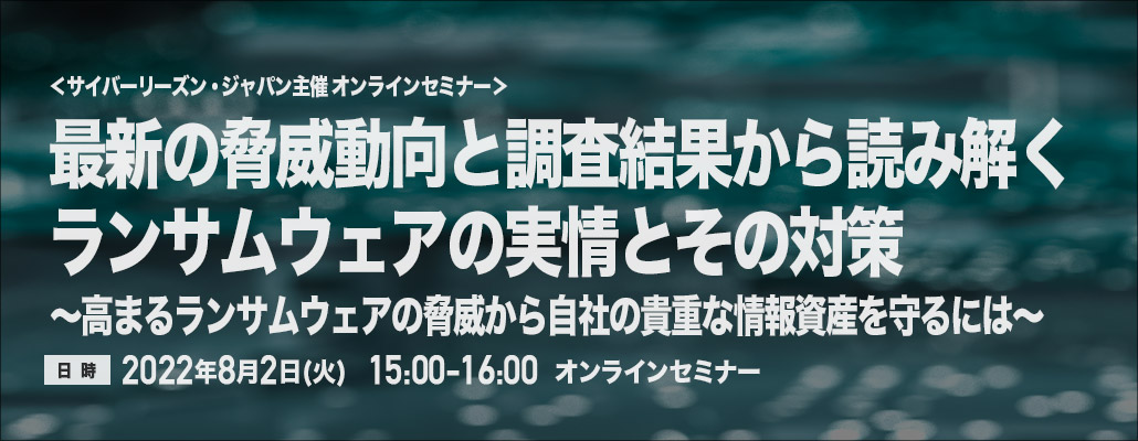 <8/2 オンライン>最新の脅威動向と調査結果から読み解くランサムウェアの実情とその対策 〜高まるランサムウェアの脅威から自社の貴重な情報資産を守るには〜