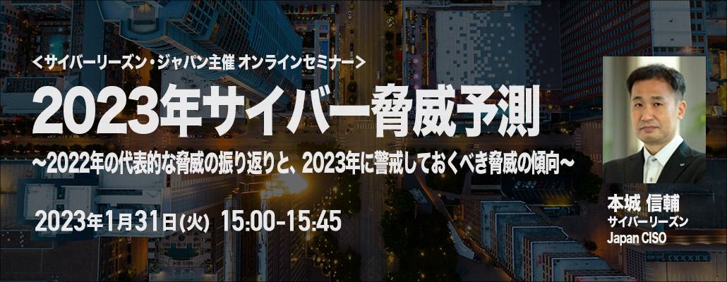 <1/31 オンライン>2023年サイバー脅威予測 ~2022年の代表的な脅威の振り返りと、2023年に警戒しておくべき脅威の傾向~