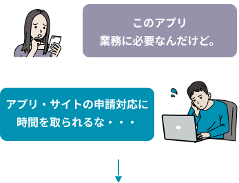 アプリダウンロードの申請に管理部門の対応工数が